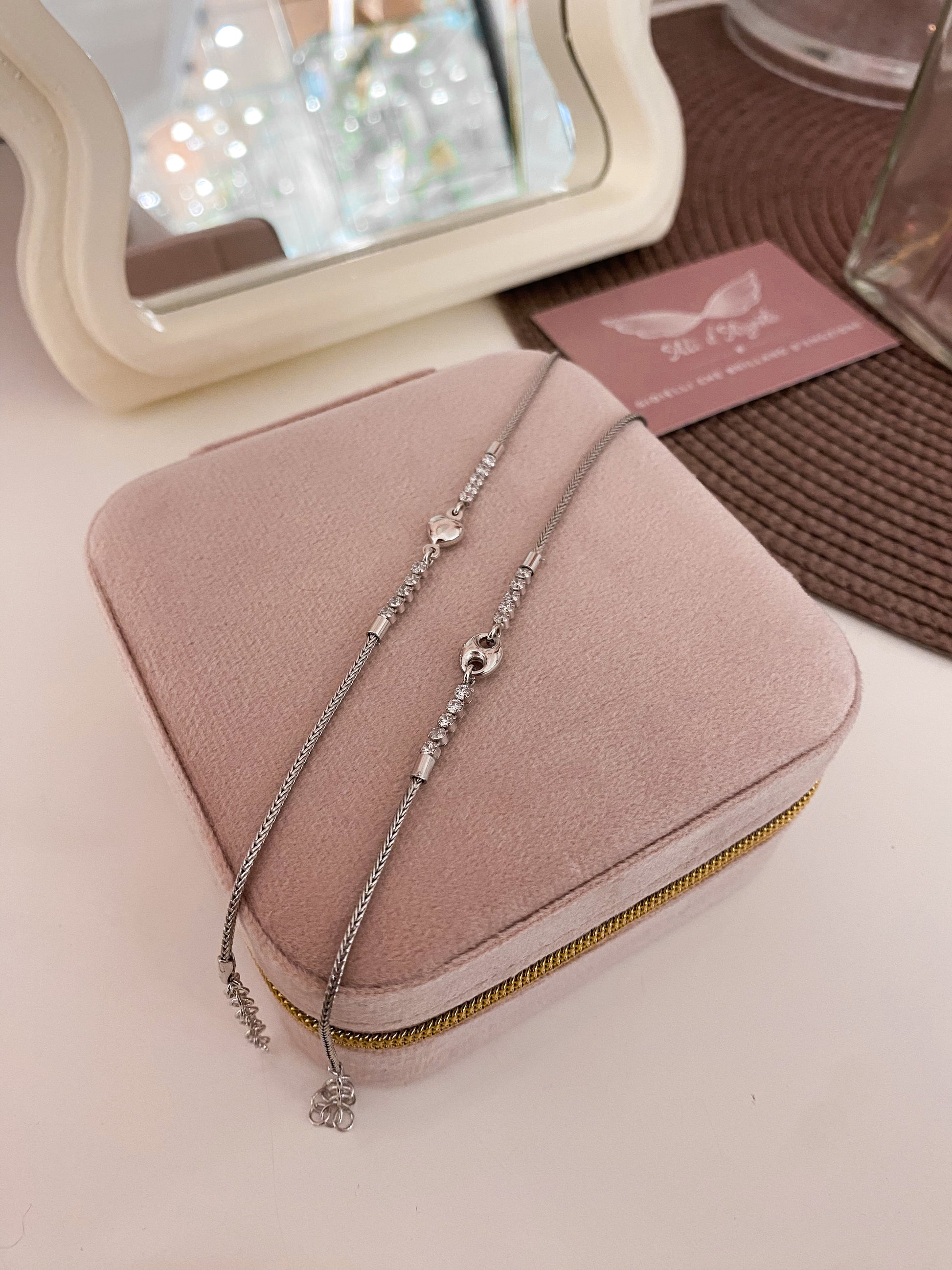 Per preservare i gioielli in Argento925 è bene evitare il contatto con sostante contenenti alcol (detersivi, creme, profumi) e con l’acqua di piscina e sorgenti termali.