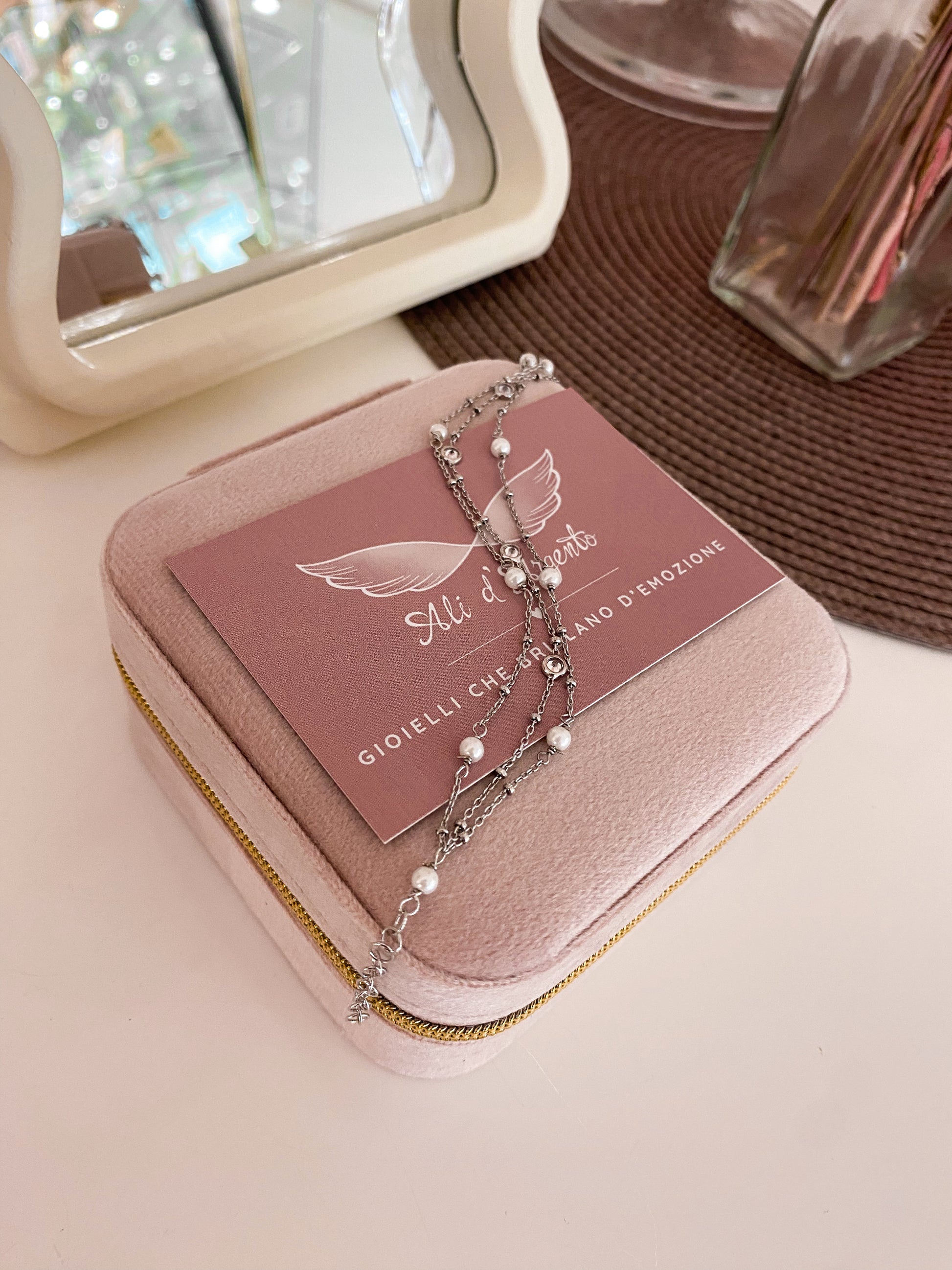 Per preservare i gioielli in Argento925 è bene evitare il contatto con sostante contenenti alcol (detersivi, creme, profumi) e con l’acqua di piscina e sorgenti termali.