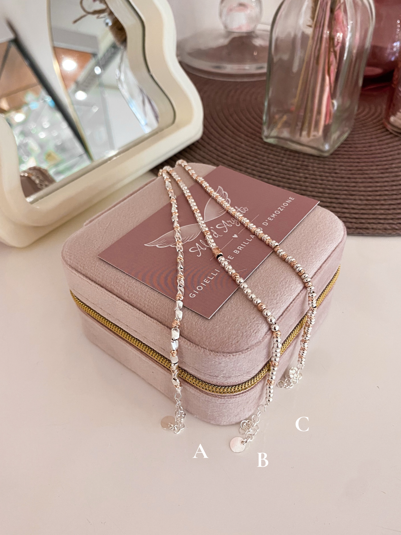 Per preservare i gioielli in Argento925 è bene evitare il contatto con sostante contenenti alcol (detersivi, creme, profumi) e con l’acqua di piscina e sorgenti termali.