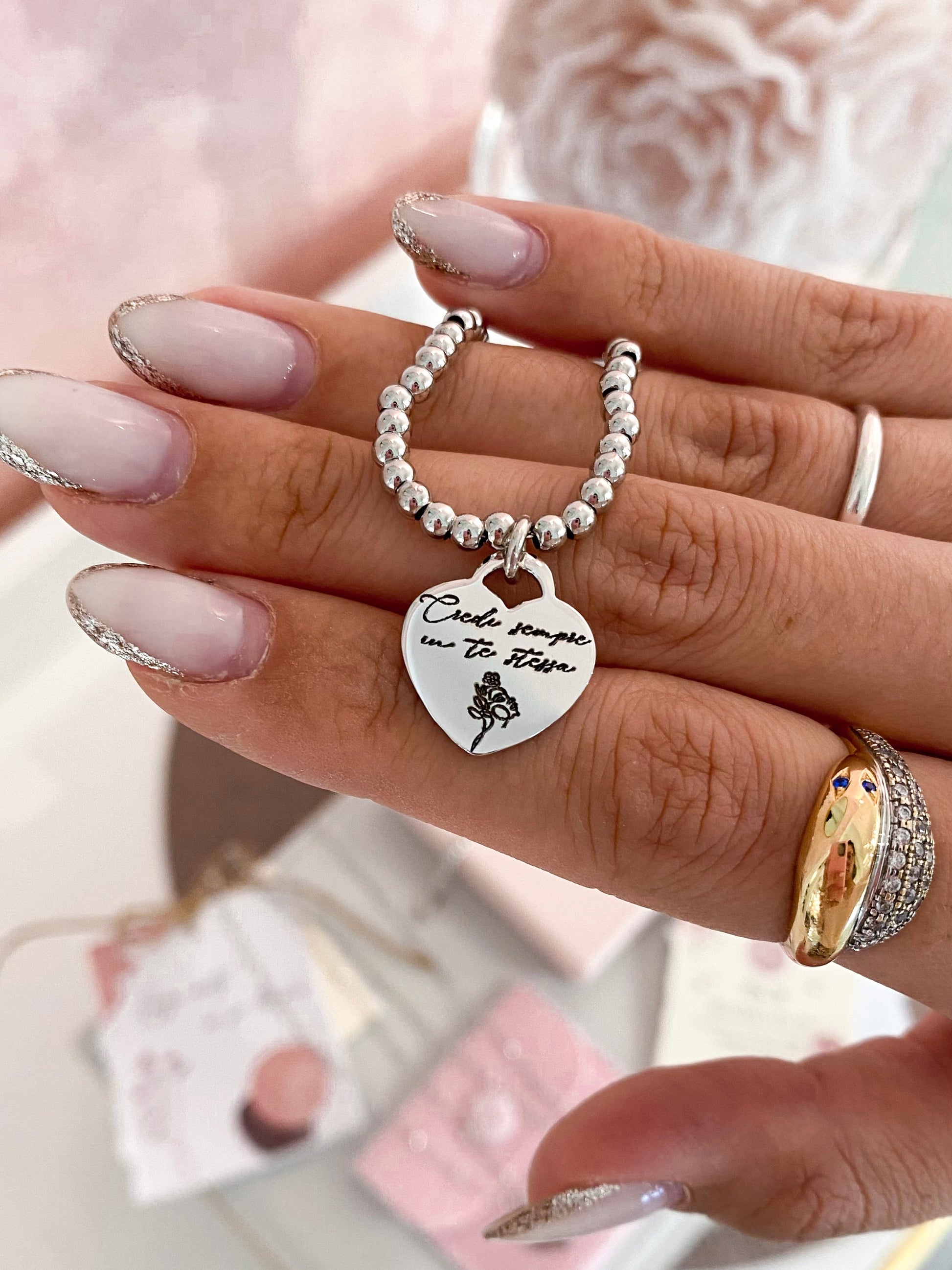 Ciondolo Limited Edition a cuore classico con incisione “Credi sempre in te stessa” e disegno Lineart.