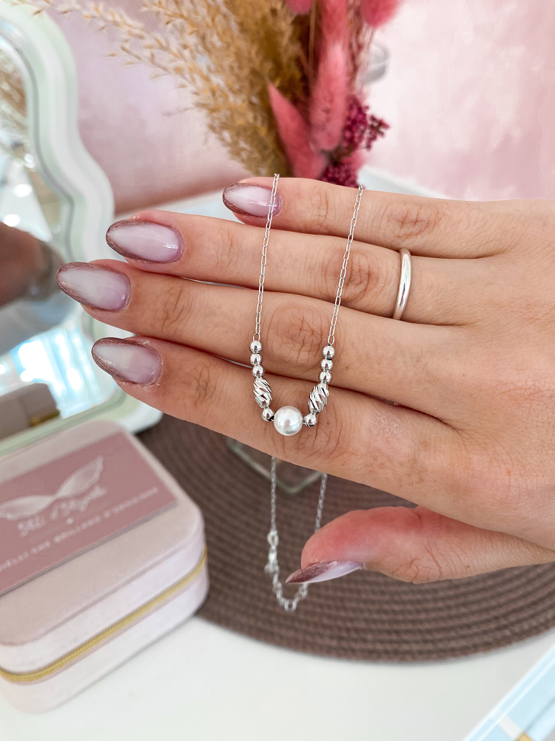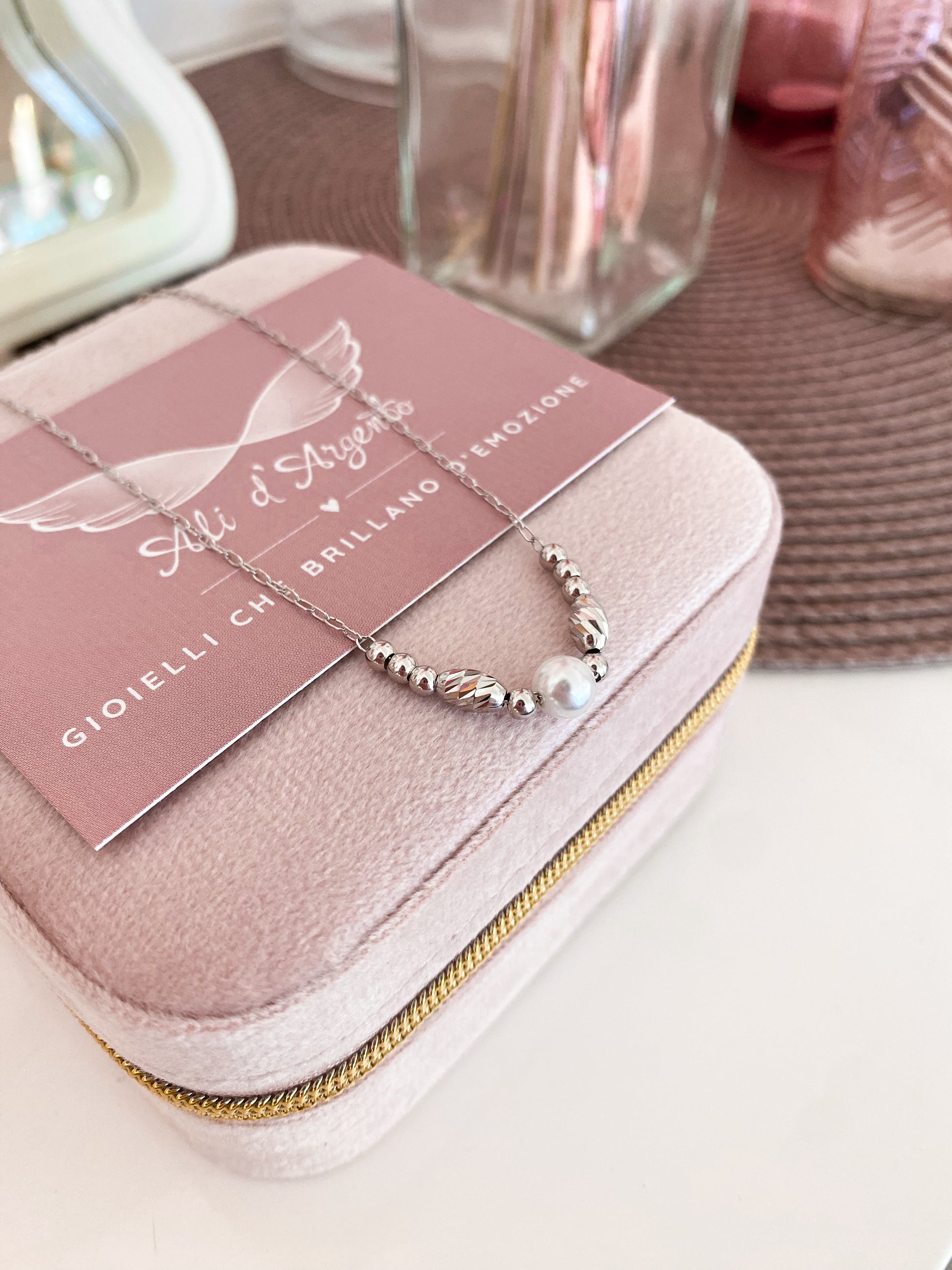 Collana con perla centrale e dettagli in argento effetto diamantato