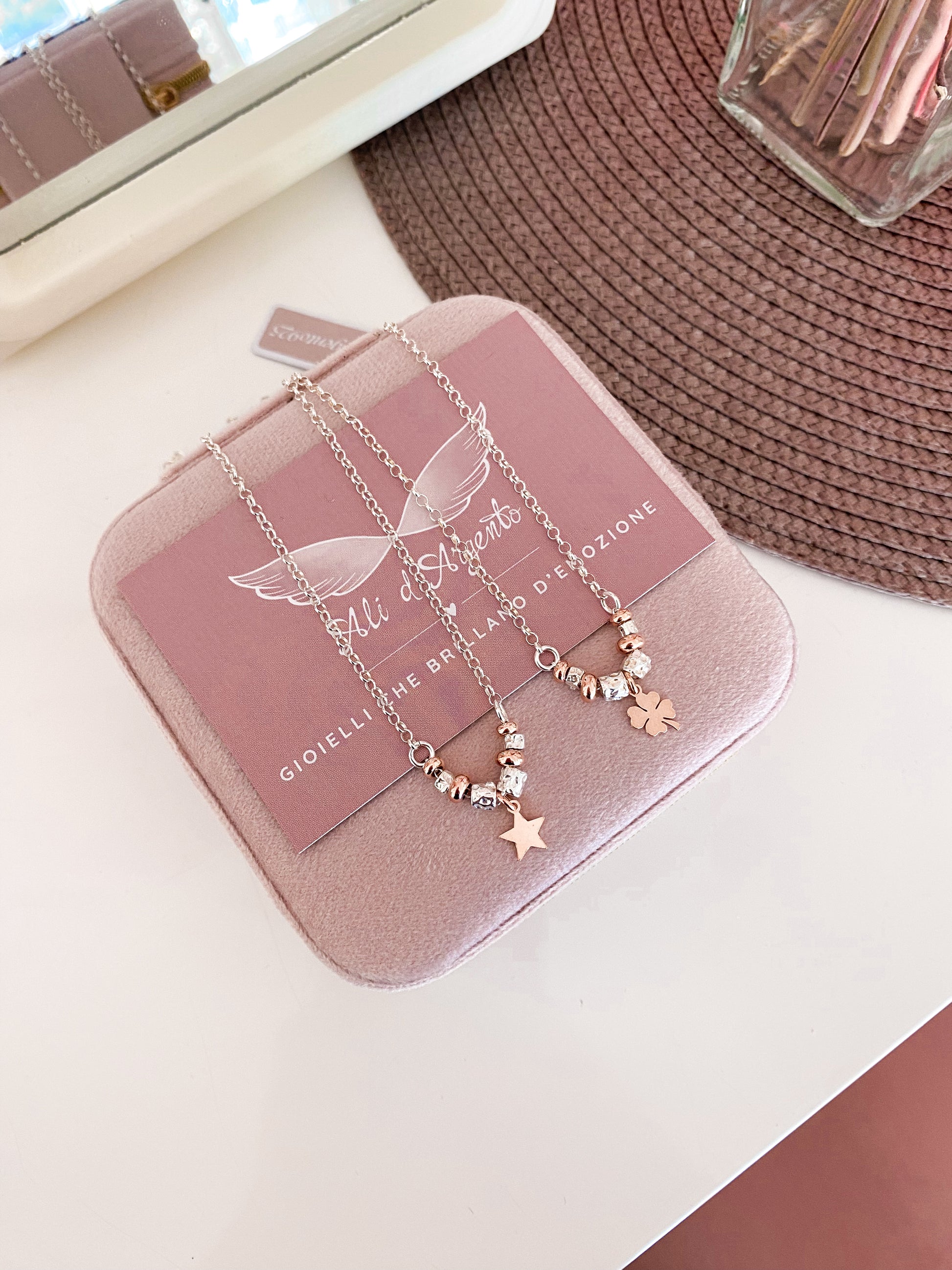 Per preservare i gioielli in Argento925 è bene evitare il contatto con sostante contenenti alcol (detersivi, creme, profumi) e con l’acqua di piscina e sorgenti termali.
