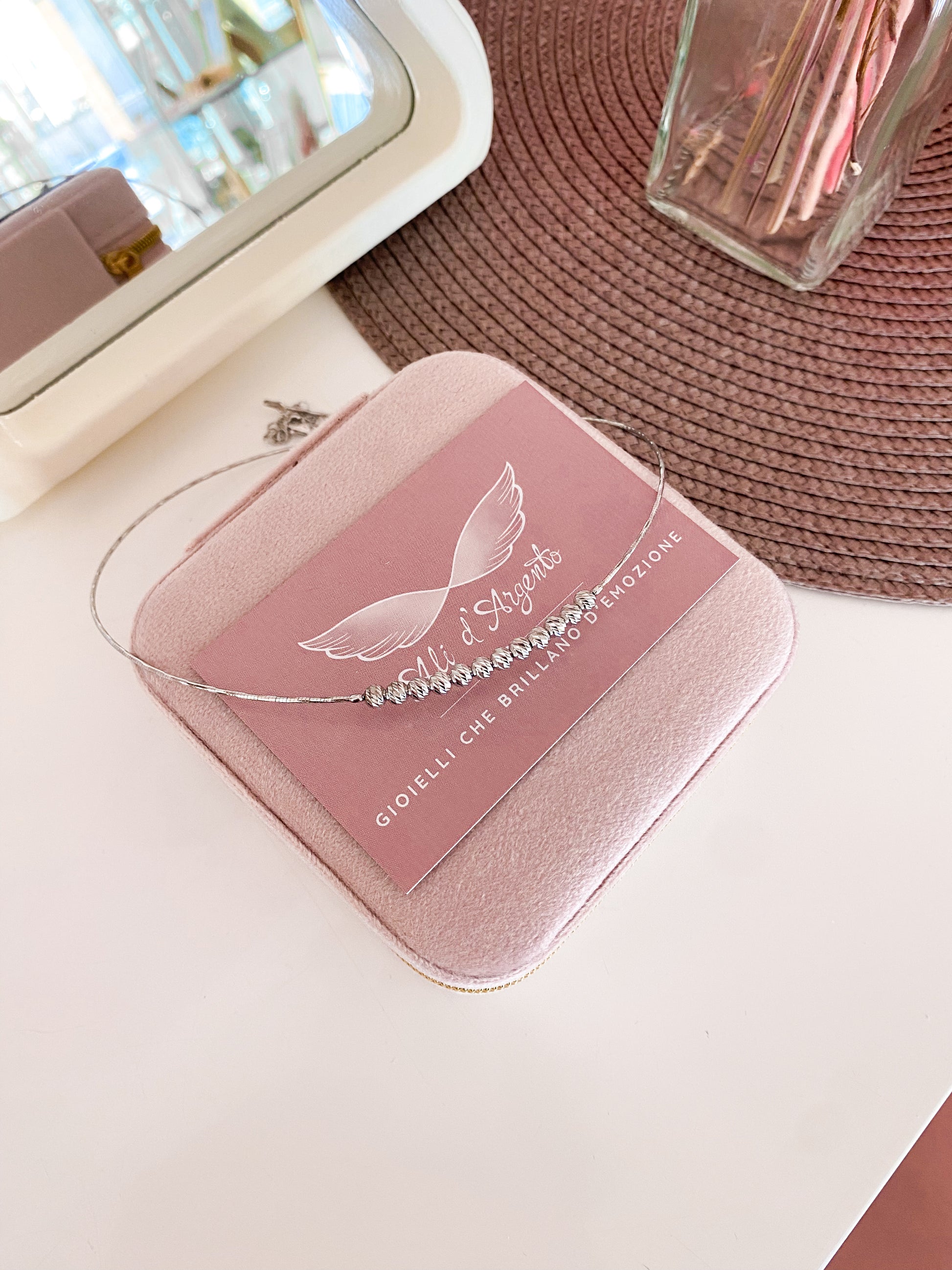 Per preservare i gioielli in Argento925 è bene evitare il contatto con sostante contenenti alcol (detersivi, creme, profumi) e con l’acqua di piscina e sorgenti termali.