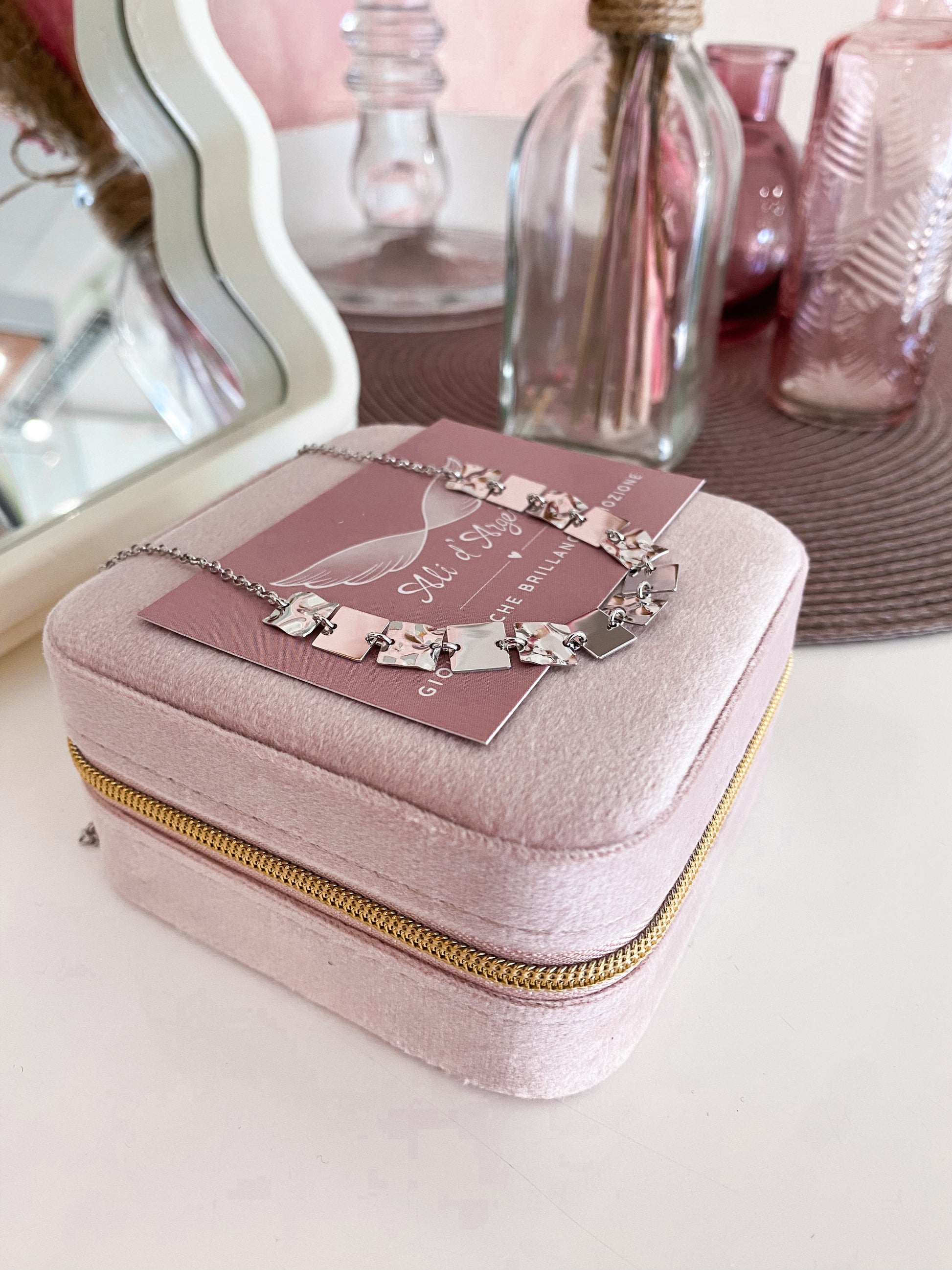 Per preservare i gioielli in Argento925 è bene evitare il contatto con sostante contenenti alcol (detersivi, creme, profumi) e con l’acqua di piscina e sorgenti termali.
