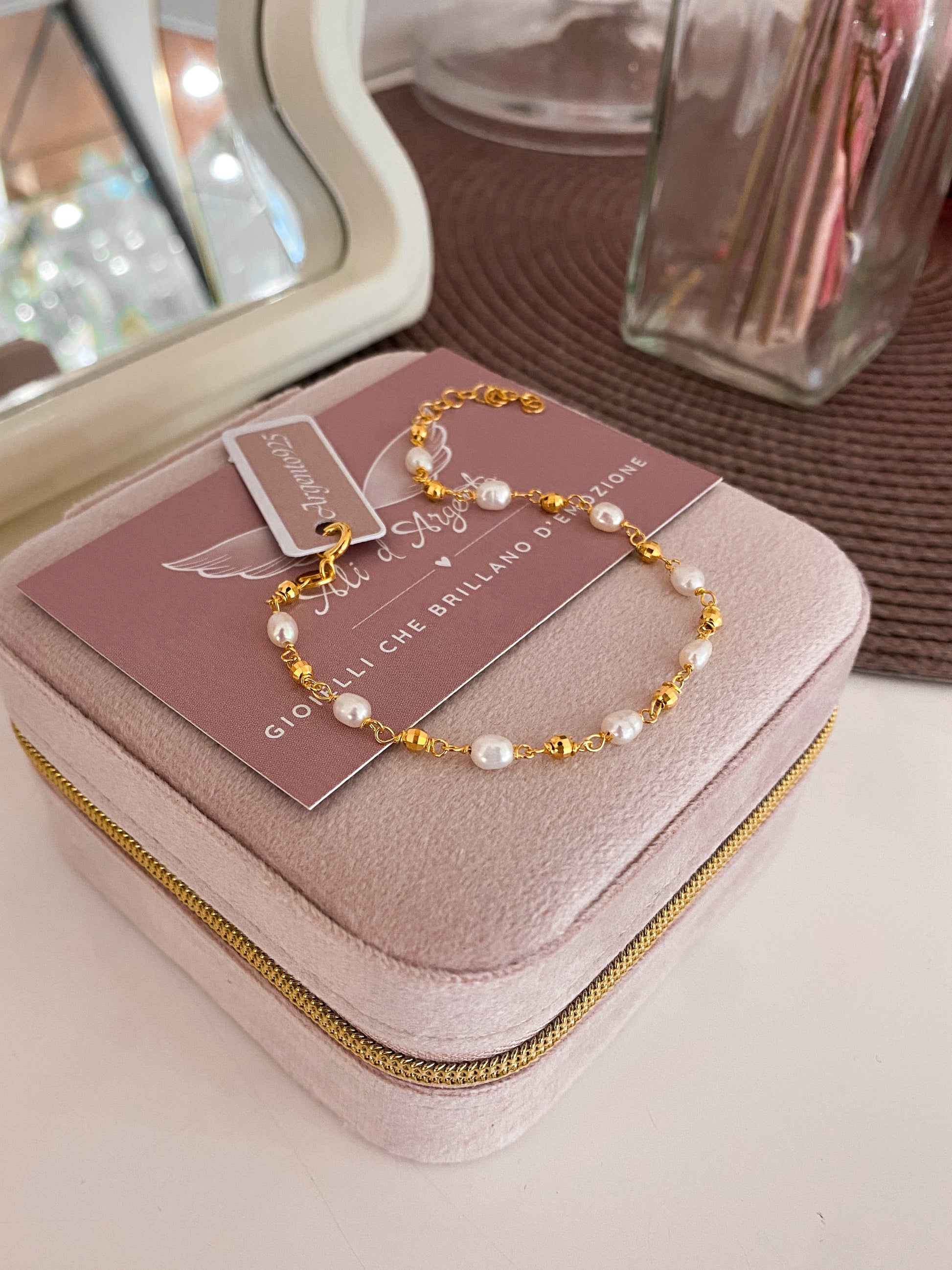 Per preservare i gioielli in Argento925 è bene evitare il contatto con sostante contenenti alcol (detersivi, creme, profumi) e con l’acqua di piscina e sorgenti termali.