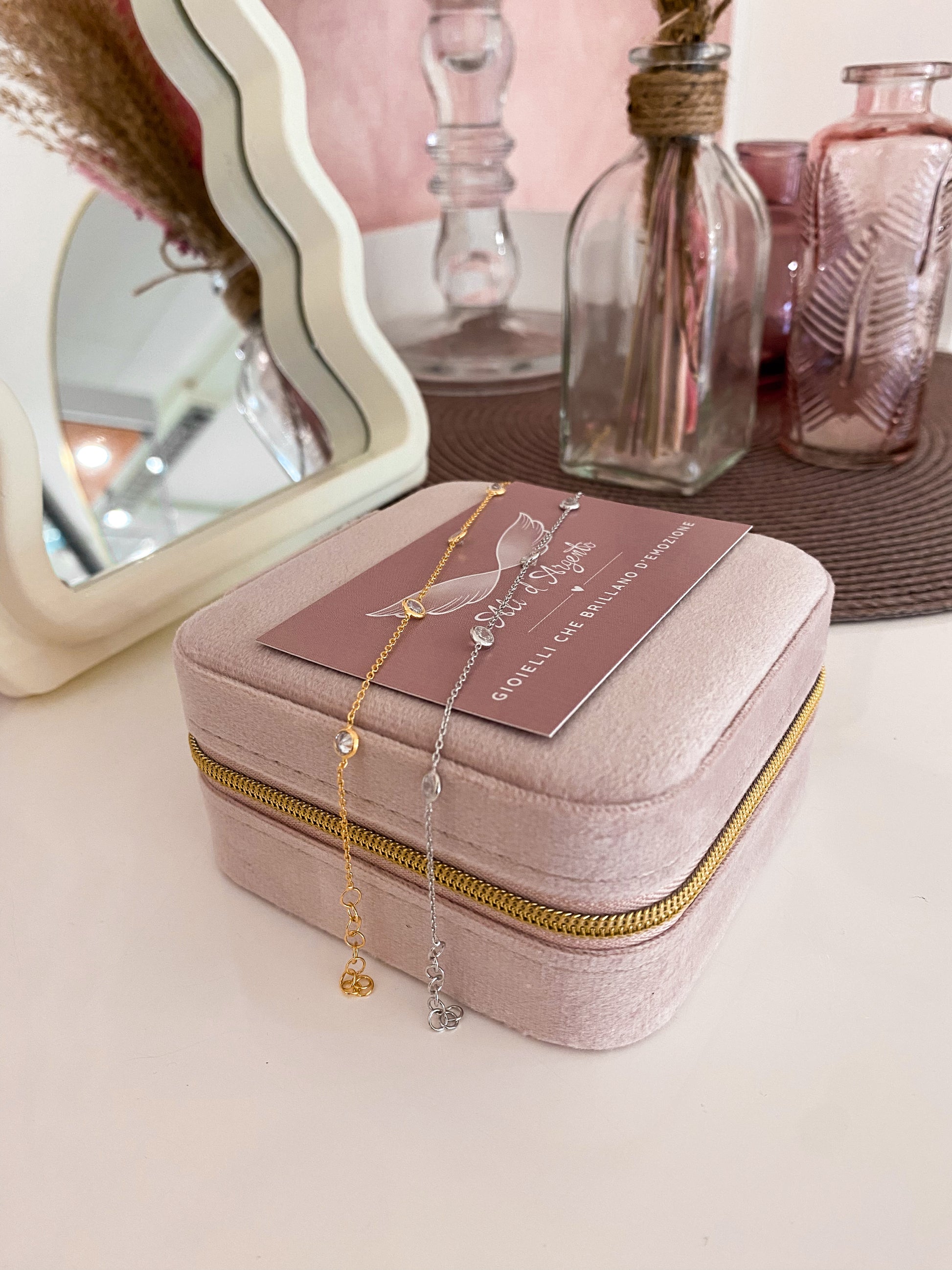 Un gioiello capace di adattarsi a ogni tua giornata: dal look casual a quello elegante. Realizzato in Argento925, questo bracciale è pensato per esaltare senza appesantire, e per restare con te in ogni occasione.