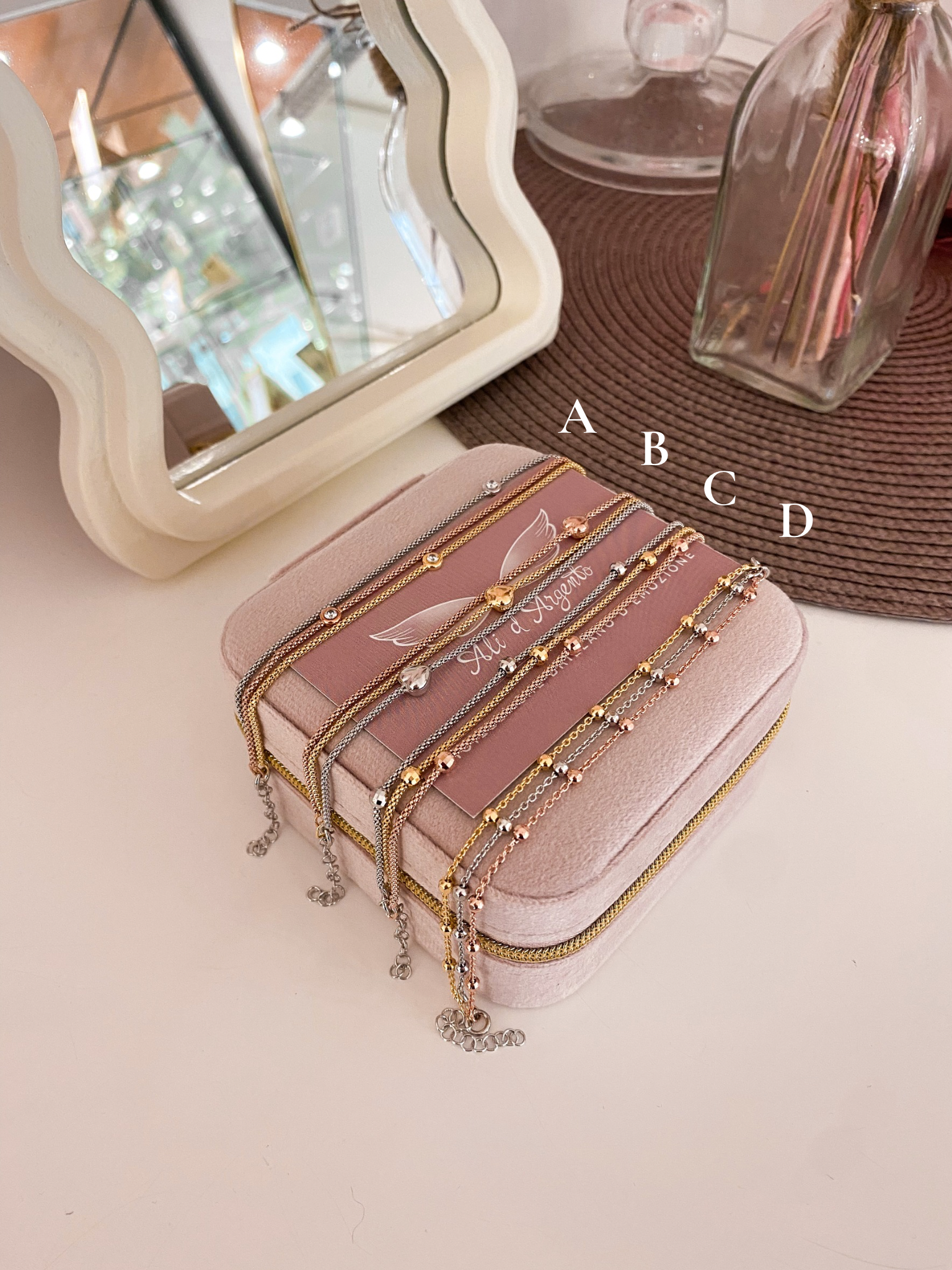 - La placcatura è delicata: con il tempo e l’usura naturale può schiarirsi, lasciando intravedere il colore autentico dell’argento sottostante — un segno di unicità che rende ogni gioiello ancora più personale